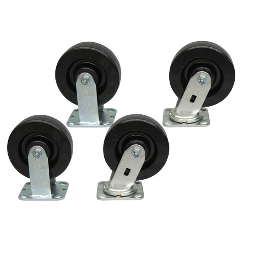 6" x 2" phenolic casters on steel rigs, two rigid, two swivel.