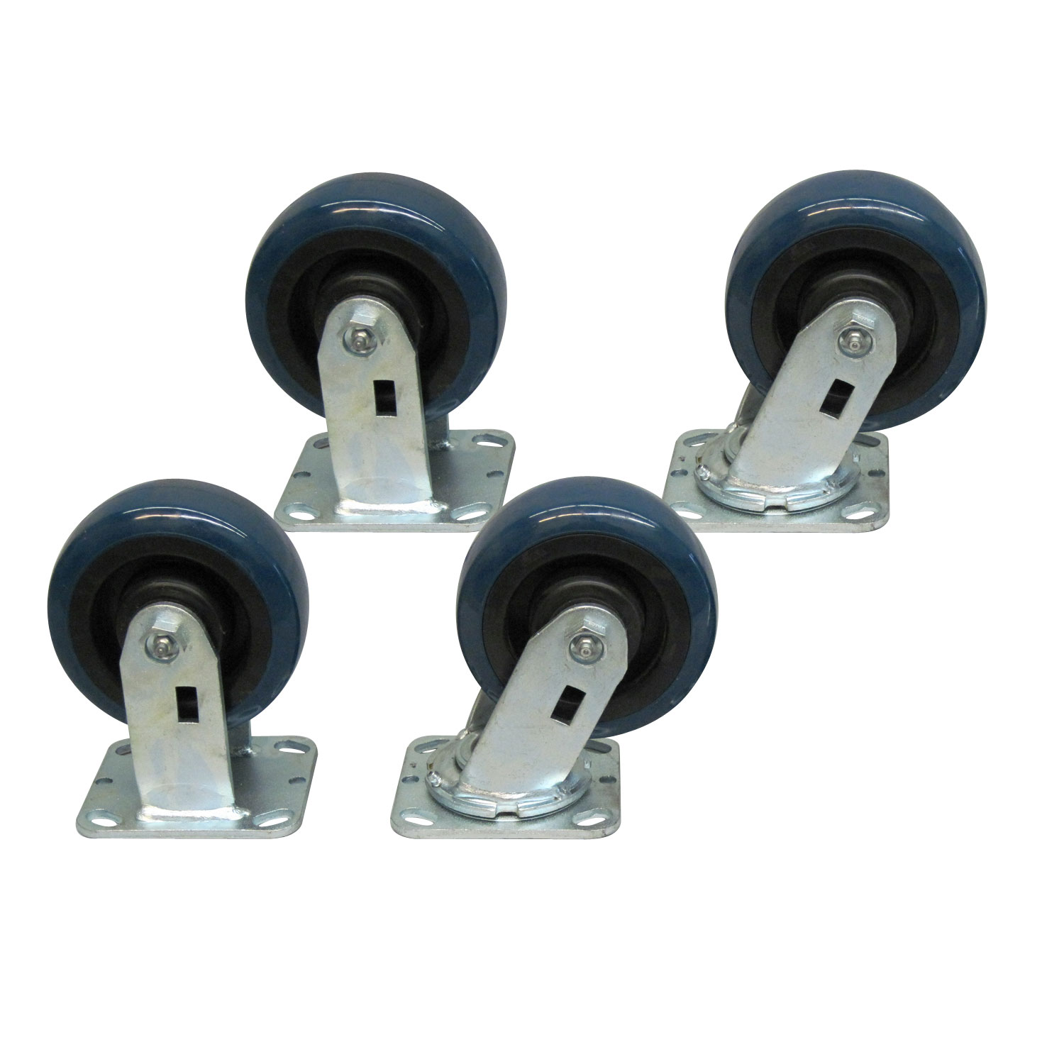 5" x 2" urethane casters on steel rigs, two rigid, two swivel.
